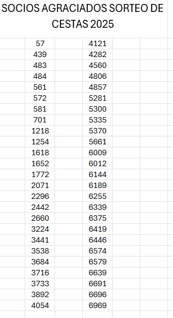 SORTEO DE CESTAS 2025 Y NÚMEROS DE SOCI@S AGRACIADOS